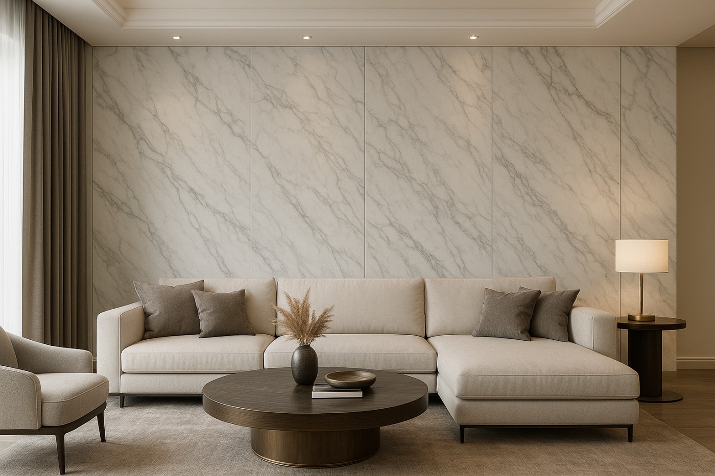 Nhờ công nghệ in 3D hiện đại, bề mặt vân đá chân thực, đa dạng màu sắc và kiểu vân giúp không gian trở nên tinh tế, đẳng cấp.