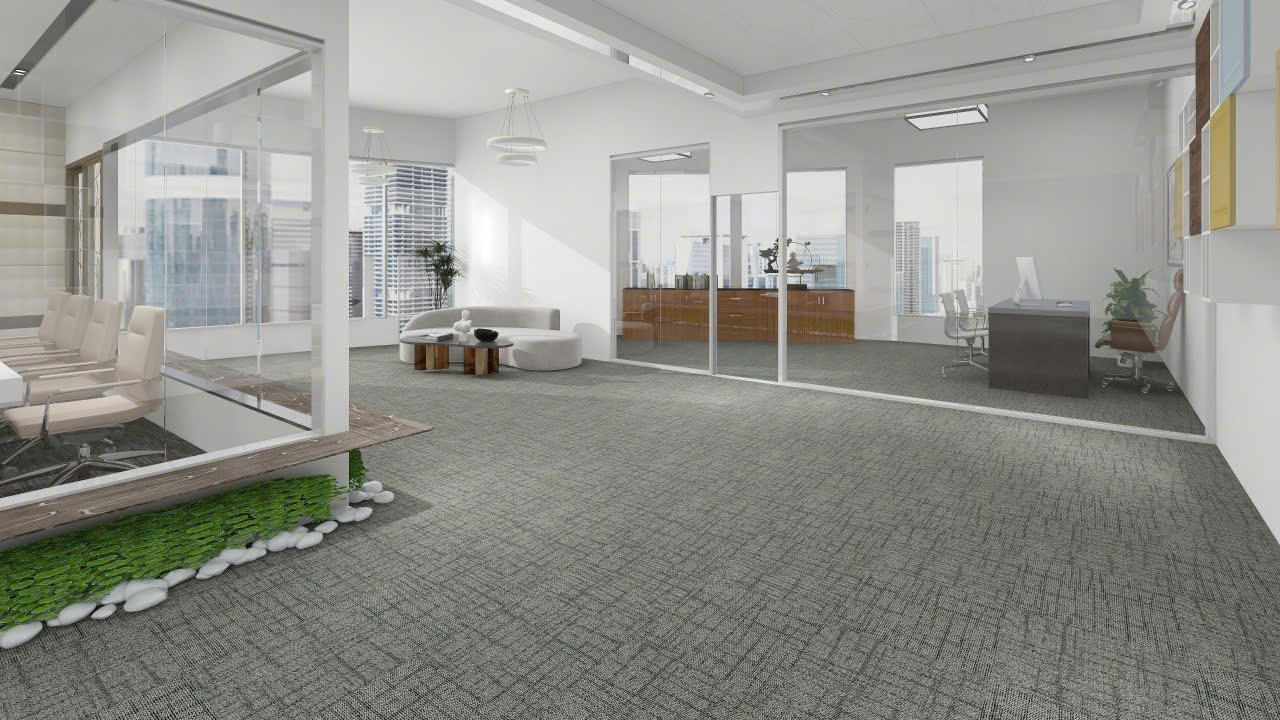 Khác với thảm cuộn truyền thống, thảm tấm văn phòng có thể lắp ghép theo nhiều kiểu hoa văn khác nhau, phù hợp với cả văn phòng hiện đại, phòng họp, sảnh lễ tân hay khu vực làm việc mở.
